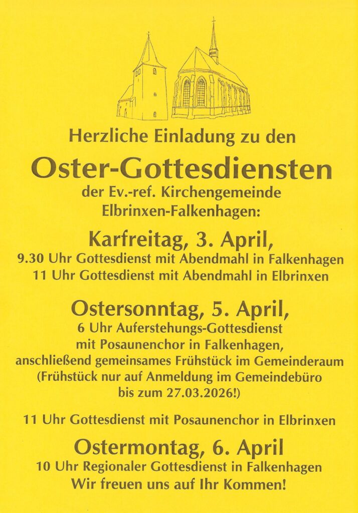 Herzliche Einladung zu den Ostergottesdiensten der Ev.-ref. Kirchengemeinde Elbrinxen-Falkenhagen!